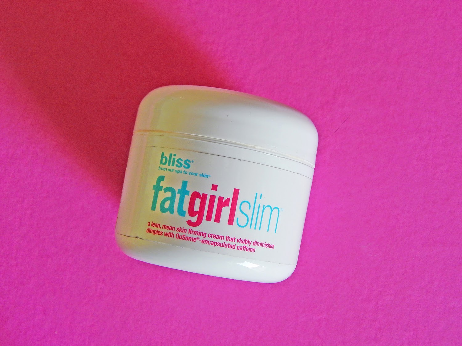 3.Bliss Fat Girl Slim- nagyon vicces nevű termék, ami elvileg a narancsbőr ellen hatásos. Koffeint tartalmaz, ami fokozza a vérkeringést és így segíti a méreganyagok távozását a bőr alól. Én nem hiszek az ilyen készítményekben, a helyes táplálkozást és a mozgást nem váltják ki az ilyen kenceficék, de esetleg kiegészítő kezelésnek jó lehet. Finom mentolos illata van, jól esik a bőrnek.