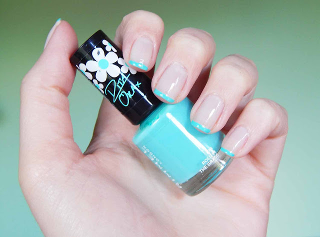 Néhány napja készítettem ezt a színes francia manikűrt és a blogon is meg akartam mutatni nektek, mert szerintem nem volt a blogon még ilyen egyszerre visszafogott és vidám manikűr. :) A lakkozáshoz az Avon Gel Finish lakkok Creme Brulee árnyalatát használtam alapként, ebből 2 réteg kellett, de 3 réteget is elviselt volna. A száradási ideje gyors volt, de csak pár óra múlva tettem rá a francia sablonokat, mert azok hajlamosak belerondítani a még friss lakkozásba. A körömvégekre a Rimmel Rita Ora lakkok közül a Roll In The Grass árnyalatot használtam, ami egy élénk mentaszín - belőle elég volt már egy réteg is. Végül a Miss Sporty Turbo Dry gyorszárító fedőlakkot használtam, hogy egybemossam a két réteget, de picit buborékossá tette a lakkozást.